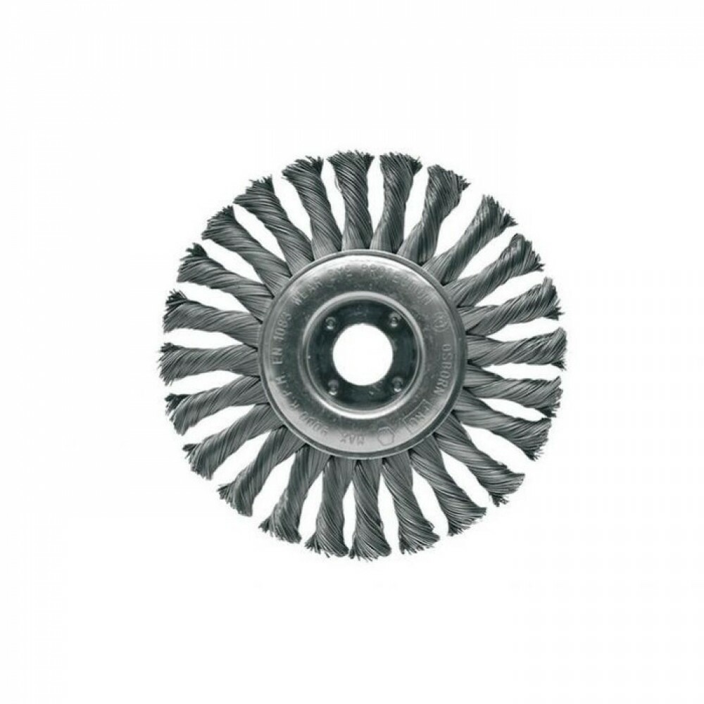A escova trançada rotativa de aço tipo cônica pode ser fabricada com arames trançados de aço carbono e aço inox ou de arame ondulado.