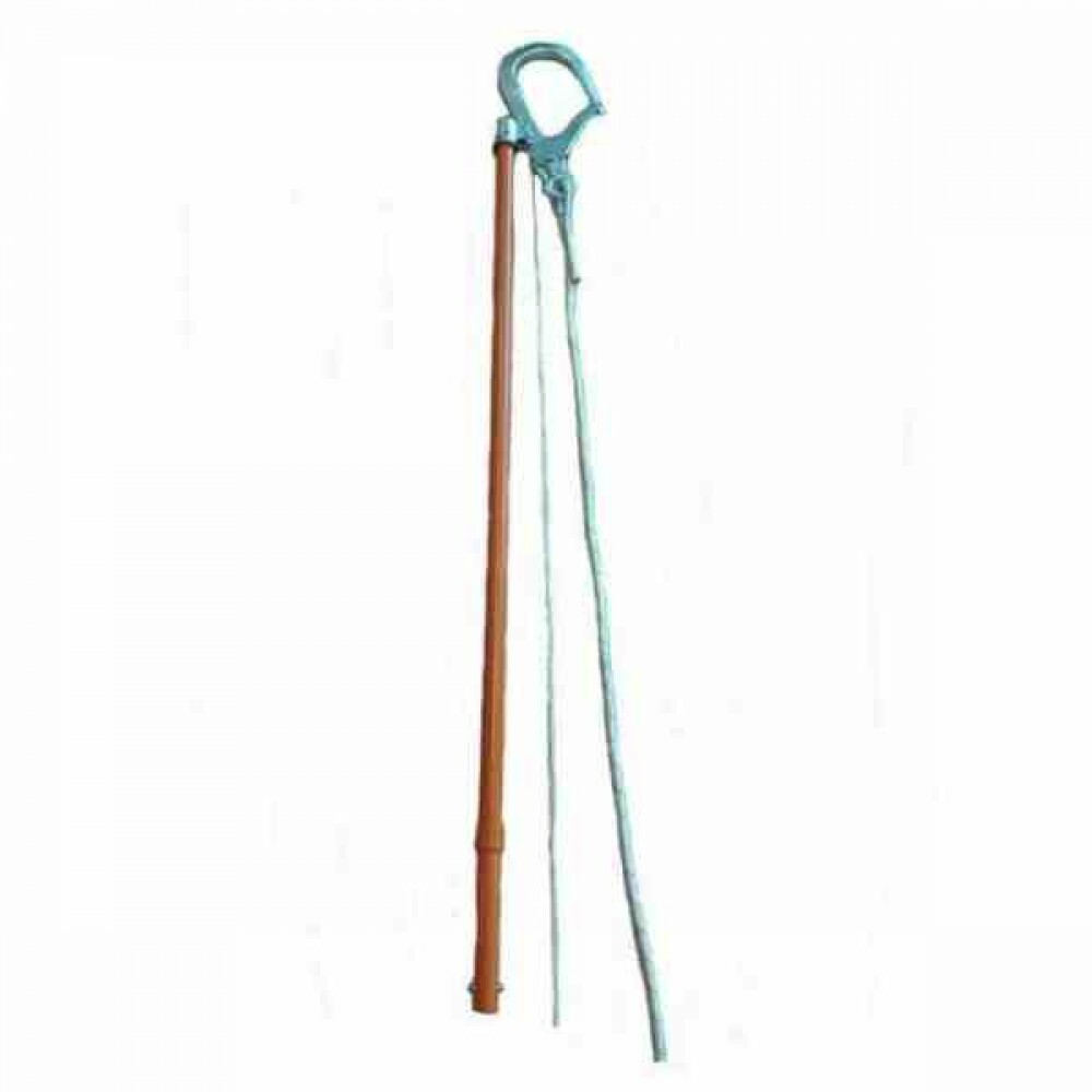Vara de manobra fabricada em fibra de vidro de alta resistência com resina epoxi, atende integralmente à norma ASTM F-1826-00.|Possui gancho conector em aço com trava, equipado com sistema de movimentação por corda para abertura do gancho.