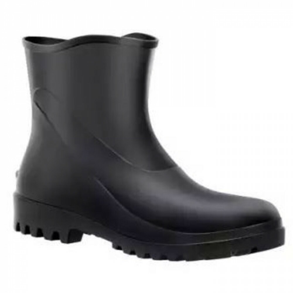 Bota de segurança cano extra curto, tipo impermeável, de uso profissional, confeccionada em policloreto de vinila (pvc) injetado em uma só peça.