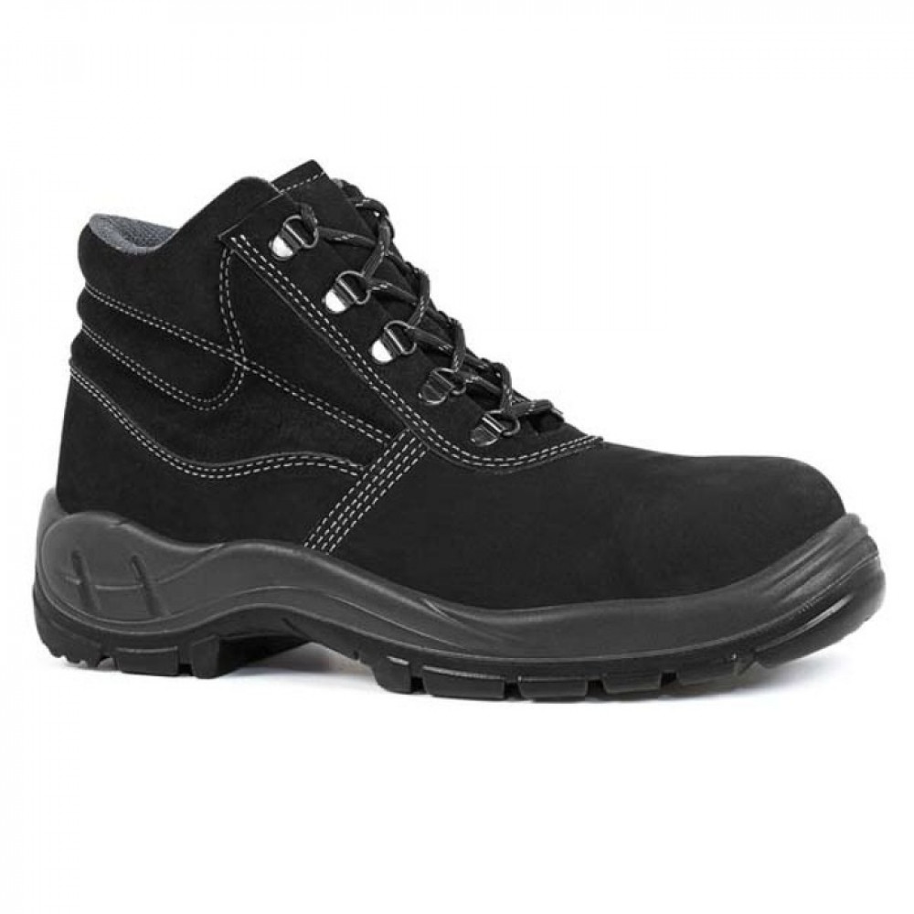 Botina com fechamento por atacador, língua fole e colarinho acolchoado, forro interno na gáspea não tecido e forro do cano em sanitec dublado com manta de não tecido, ilhoses de gancho, solado injeção direta bidensidade bicolor e de uso em diversos ambientes de trabalho. Calçado que proporciona conforto e que atende a todas as Normas de segurança da ABNT NBR ISO 20344, 20345 e 20347.
