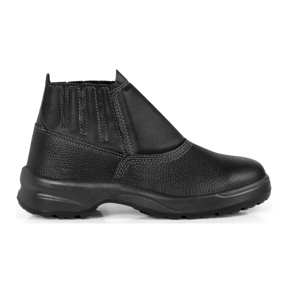 Confeccionada em couro; Elástico lateral recoberto; Dorso acolchoado; Sem bico de aço; Palmilha de montagem em material reciclável dublada com EVA montada pelo sistema strobel; Solado com injeção direta bidensidade bicolor.