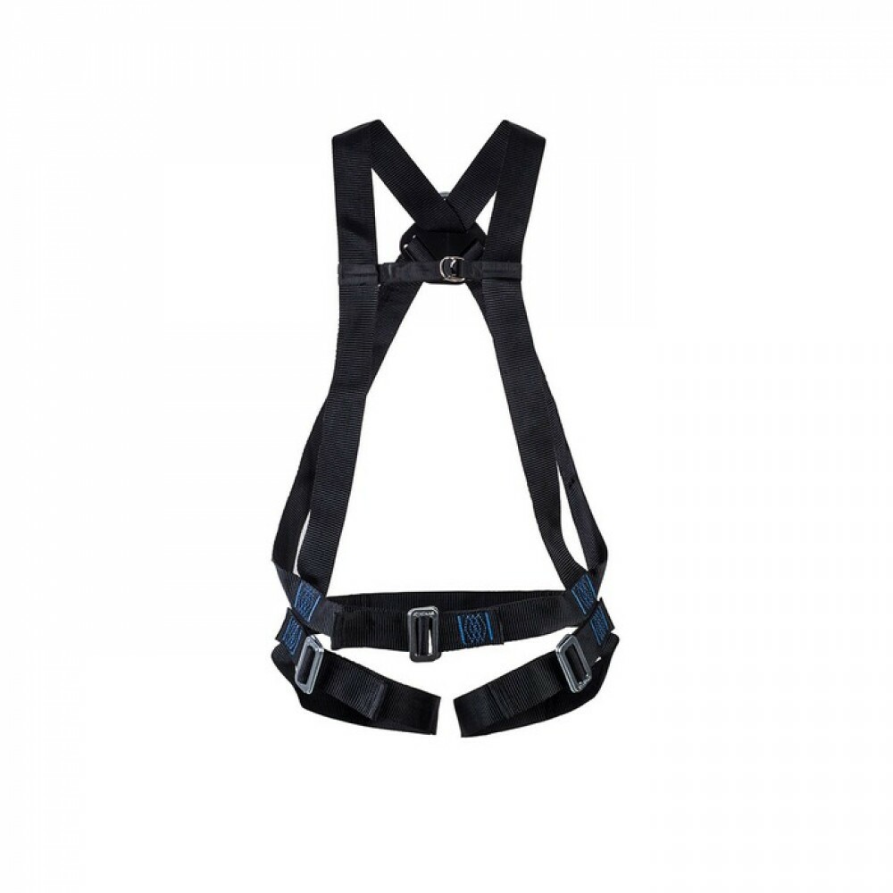 Cinturão de segurança do tipo paraquedista com 1 ponto de conexão; Construído em material sintético, poliéster; Conexão dorsal , uma argola ''D'' inclinada, em aço - Utilizada para retenção de quedas;