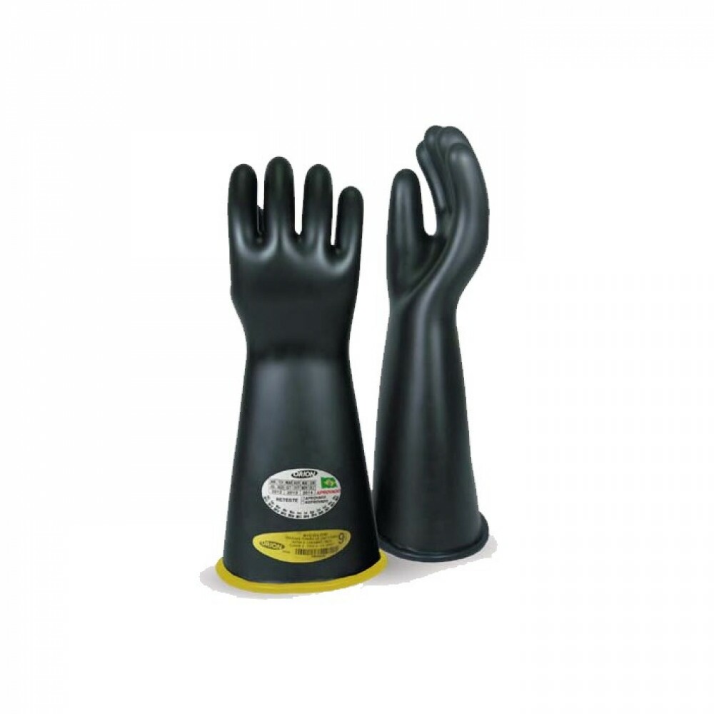 Luva alta tensão 2,5 kv classe 00 Tensão máxima de uso 500 volts Tam. 9,5/10,5. Com a finalidade exclusiva de oferecer proteção pessoal contra choques elétricos, as luvas e os protetores isolantes atendem a normas específicas (ANSI/ASTM D120.95), conservadas em boas condições e quando corretamente usadas, oferecem proteção contra choques elétricos, queimaduras, lesões sérias ou morte. Permitindo assim, que o trabalho seja realizado em linha viva São fabricadas com composto de borracha natural de altíssima qualidade e passam por um rigoroso controle de qualidade DENOMINAÇÃO (volts) = 2.500; TENSÃO (teste ? volts) = 2.500; TENSÃO MÁXIMA P/ USO (volts) 500.