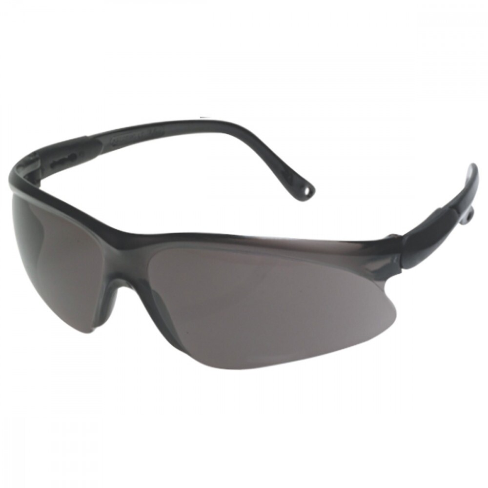 Óculos de segurança, com armação e visor confeccionados em uma única peça de policarbonato incolor, amarelo cinza ou verde e hastes tipo espátula. As hastes são constituídas de duas peças: uma semi-haste vazada confeccionada de material plástico rígido preto, com uma das extremidades fixadas ao visor por meio de parafuso metálico e outra semi-haste confeccionada do mesmo material do visor, que se encaixa na outra extremidade da semi-haste anterior e que permite o ajuste do tamanho. Os óculos são indicados para proteção dos olhos contra impactos de partículas volantes frontais e luminosidade intensa frontal.