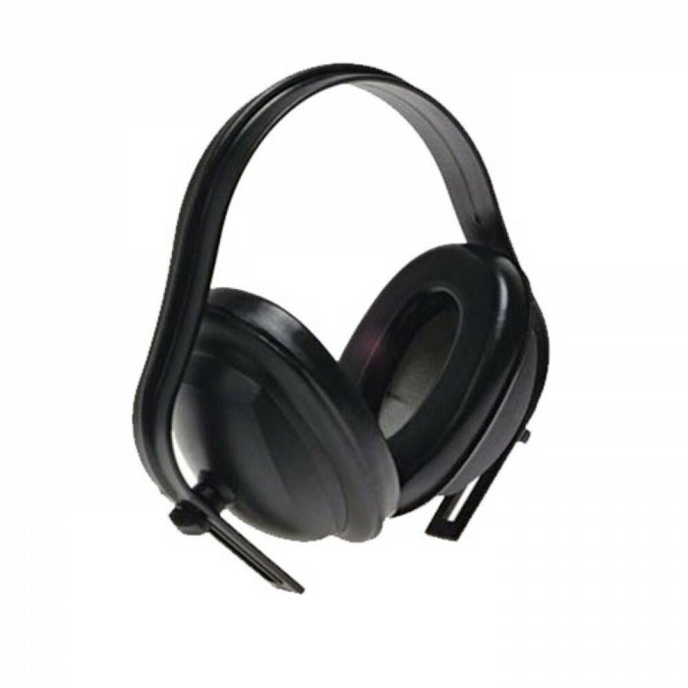 Abafador de ruídos com conchas, almofadas preenchidas de espuma com revestimento sintético e arco em policarbonato flexível.