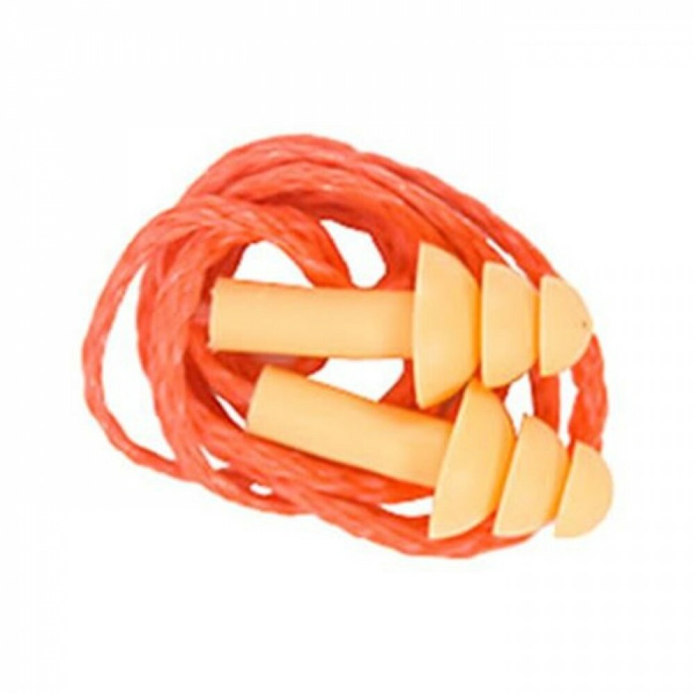 Fator de proteção: 13NRRsf SEGUNDO O MTE: protetor auditivo de segurança, tipo plug de três flanges, confeccionado em silicone na cor salmão e amarelo. atóxico, antialérgico, tamanho único, com ou sem cordão. ref.: Plug F001.