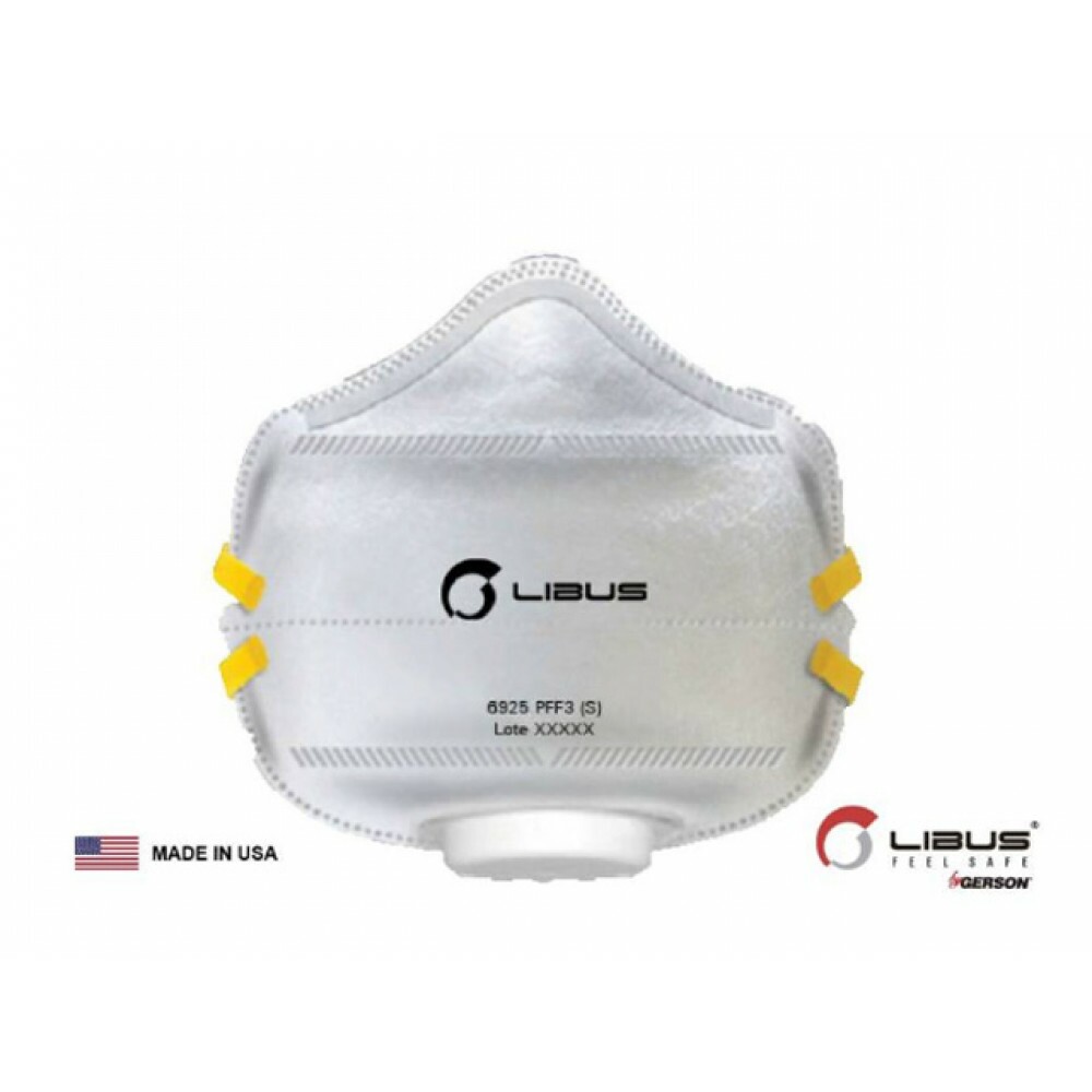 Respirador purificador de ar de segurança tipo peça semifacial filtrante para partículas, formato concha com válvula de exalação, classe PFF3 "S".