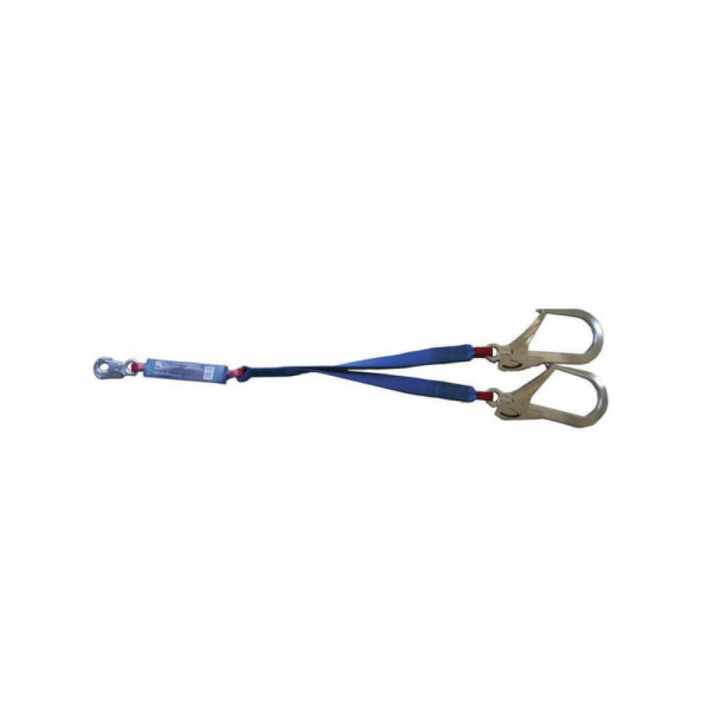 Talabarte y em fita com absorvedor de energia, confeccionado em fita de poliéster.