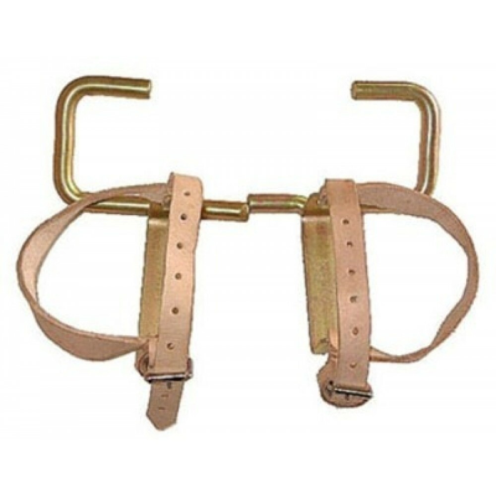 Fabricada em aço carbono 1010 / 1020 galvanizado a fogo, fivela metálica para ajuste e alças em couro. Utilizada para subir em poste tipo Duplo T.