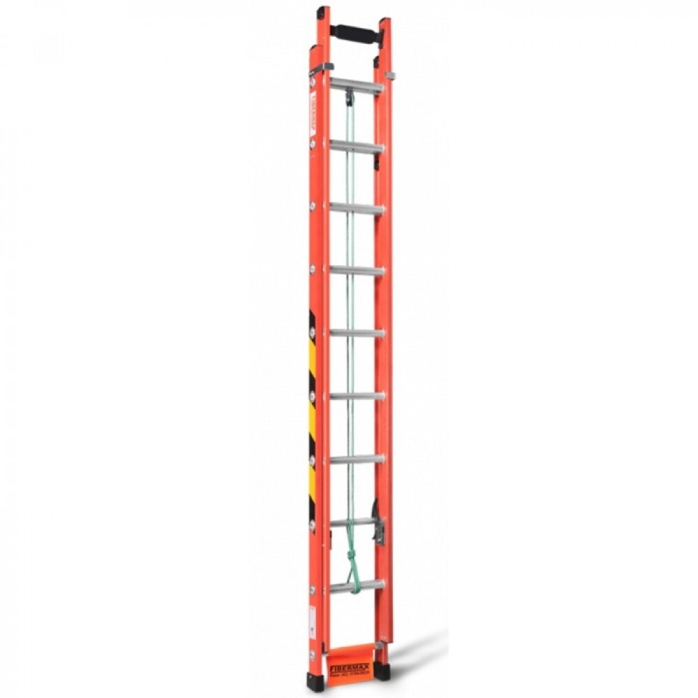 Escada portátil, não sustentável, de comprimento ajustável, constituída de duas ou mais seções capazes de deslizarem uma sobre a outra por meio de dispositivos apropriados. O comprimento da escada é indicado pela medida tirada ao longo dos montantes laterais, com a escada totalmente estendida. Perfil ?U? confeccionados em Fibra de Vidro * Resistentes a intempéries * Não condutor elétrico Degraus: Alumínio ranhurado (estriado) Ferragens: aço galvanizado 1020 dentro das normas.