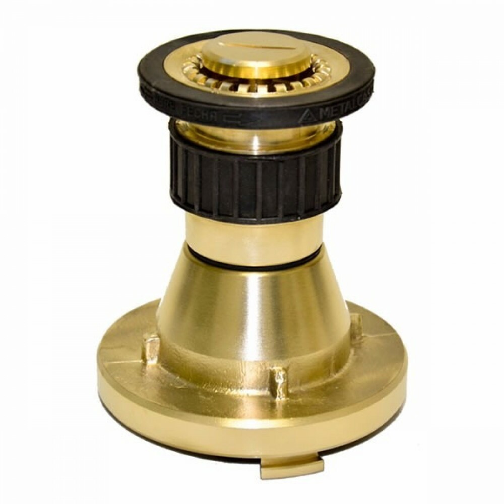 Esguicho regulável de 3 posições bocal-fechado, jato sólido e neblina com variação de abertura de leque até 120º. Bocal com anel de borracha estriada. Diâmetro de entrada:2.1/2 polegadas Comprimento:188 mm Vazão: 229 gpm a 100 psi Acabamento:Polido Material:Bronze Posições:3 Peso (Kg):2,65
