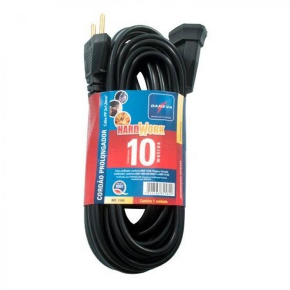 Produto certificado pelo INMETRO. Potencia máxima: 2200W. Cabo: Paralelo bitola 2 x 0,75 mm². Comprimento: 10 metros desenrolada. Disponibilidade de grandes quantidades. SEMPRE DESENROLE O PRODUTO TOTALMENTE PARA USAR.