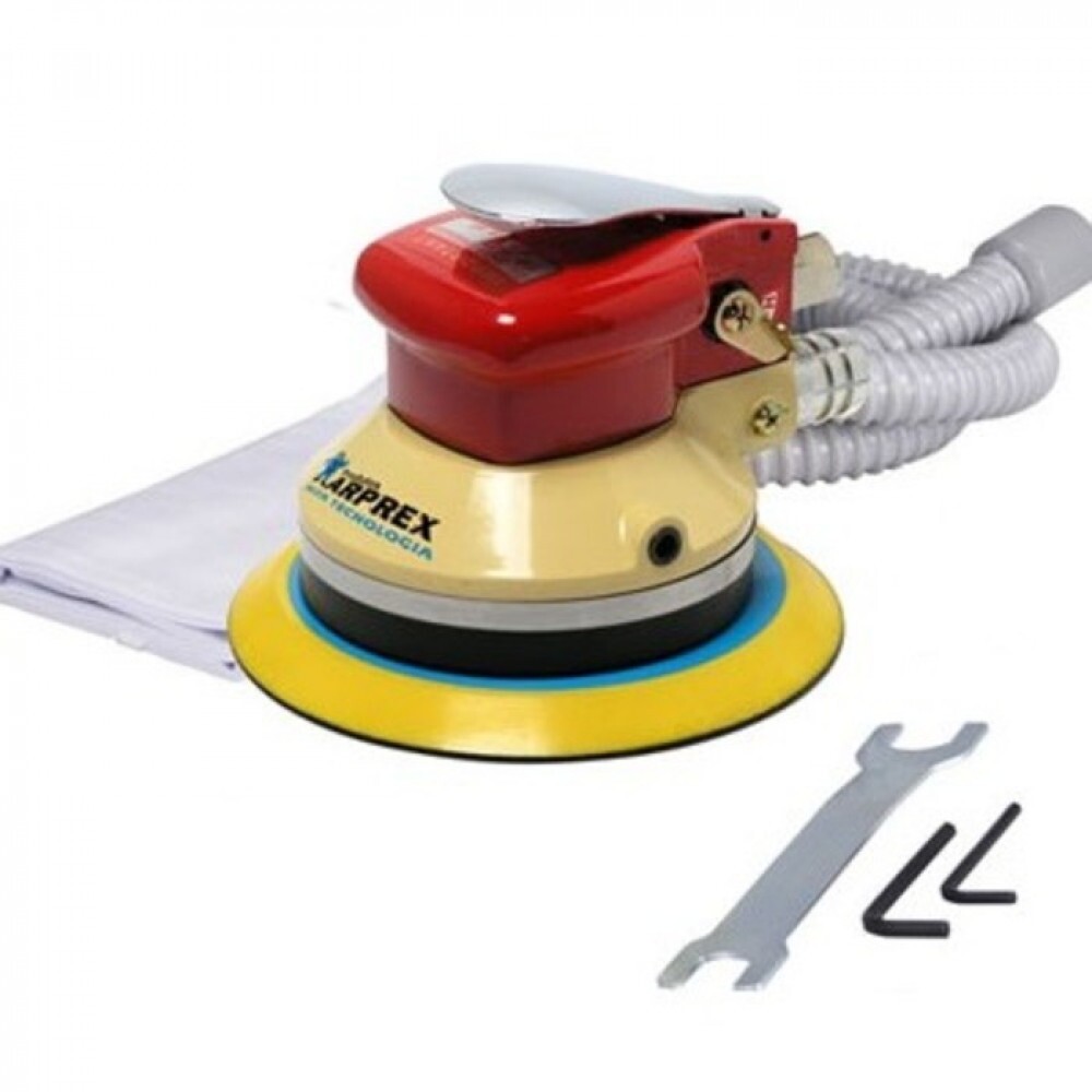 DESCRIÇÃO Rotação: 10.000 rpm Base lixa: 6'' Pressão de trabalho: 90 psi Mangueira: 3/8'' Consumo de ar: 9,9 pcm Entrada de ar: 1/4'' Ideal para lixamento e preparação de superfícies INDICAÇÕES DE USO Usada para lixar e dar acabamento em materiais diversos.