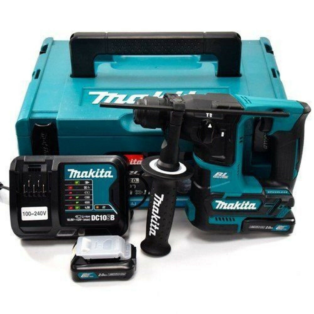 Martelete rotativo é ideal para trabalhos profissionais. Conta com velocidade variável e rotação reversível, como também iluminação de trabalho para facilitar a utilização. Possui 2 modos de operação, com e sem impacto, oferecendo ótimo desempenho.||- Projetada com a tecnologia CXT.|- Pode ser operado usando apenas uma mão.|- Dois modos de operação: Rotação e rotação com impacto.|- Velocidade variável e rotação reversível.|- Encaixe SDS PLUS.|- Iluminação de trabalho.|- Adaptável a coletor/aspirador de pó.||- Conteúdo da embalagem:|:: 2 baterias 12V 2.0 Ah |:: Carregador|:: Maleta MAK-PAC||- Especificações:|:: Concreto: 14 mm|:: Madeira: 13 mm|:: Aço: 10 mm|:: Energia de impacto: 1.0 J|:: Impactos por minuto: 0 - 4.900|:: Rotações por minuto: 0 - 850|:: Dimensões(C x L x A): 246 x 74 x 198 mm|:: Peso: 1.9 kg|:: Bateria: 12V|