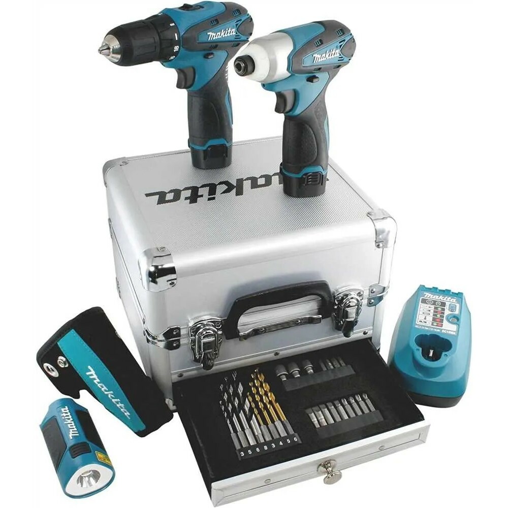 Parafusadeira/Furadeira, Parafusadeira de Impacto, Lanterna, Kit de Acessórios e Maleta