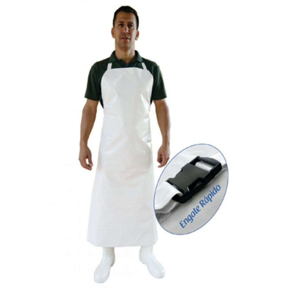 AVENTAL CONFECCIONADO EM PVC LAMINADO SIMPLES. Com 120x70 cm. possui cordões em tecido para ajuste e fixação na altura da cintura e no pescoço, presos ao avental através de ilhós. USO: proteção ao usuário de respingo de produtos líquidos e químicos (não corrosivos), partículas volantes. APLICAÇÃO: indicado para serviços e atividades que envolvam respingos de produtos líquidos e partículas volantes.