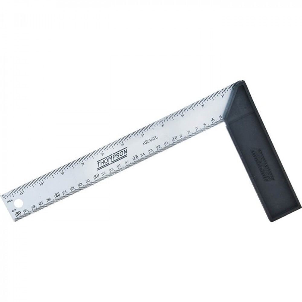 Esquadro confeccionado em aço zincado, escala gravada em tinta preta, resistente a impactos e riscos. Com cabo rebitado confeccionado em polipropileno injetado.