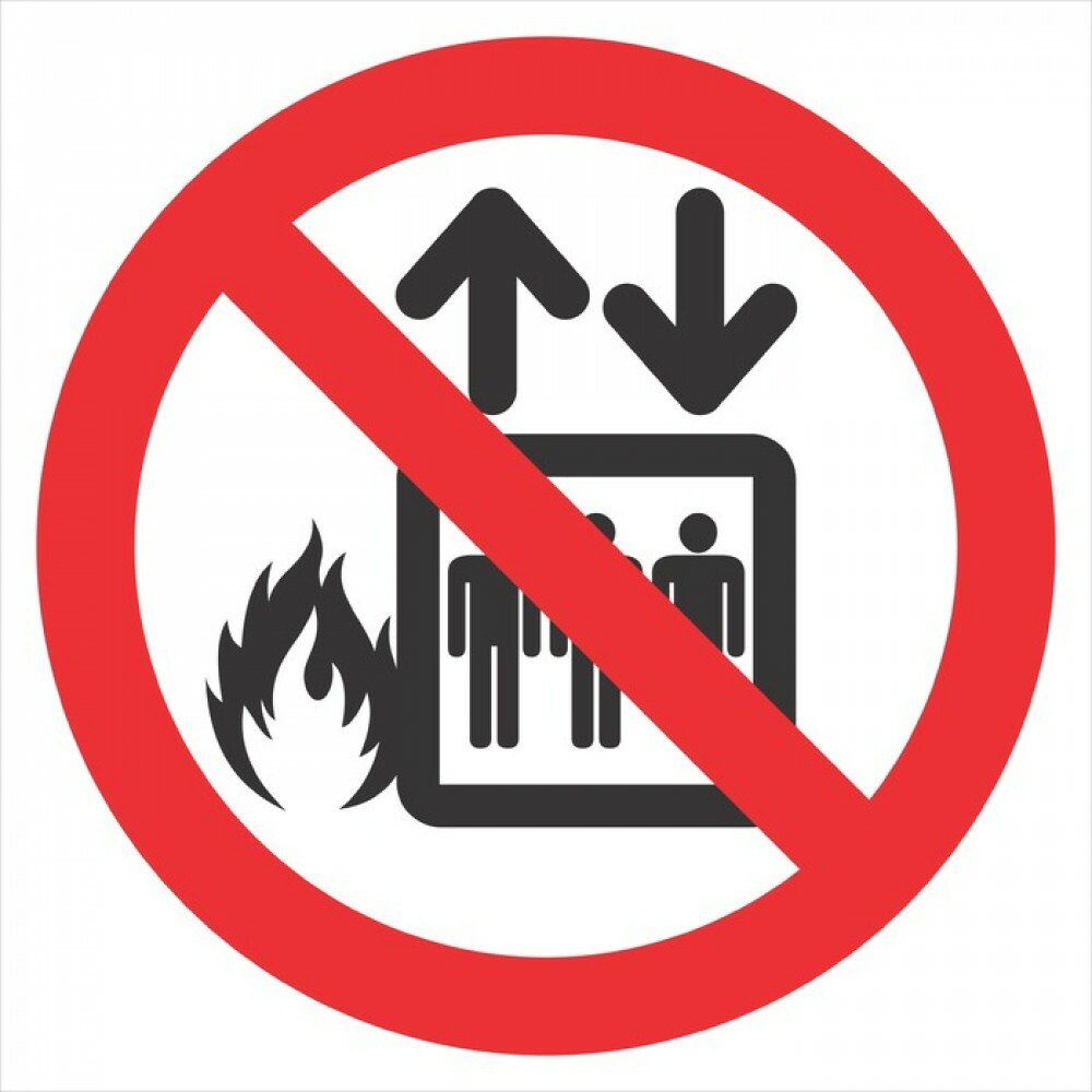 PLACA P4 PROIBIDO UTILIZAR O ELEVADOR EM CASO DE INCENDIO 15X20 EM PVC 2MM NBR 13434 FOTOLU. AUTO EXTINGUIVEL