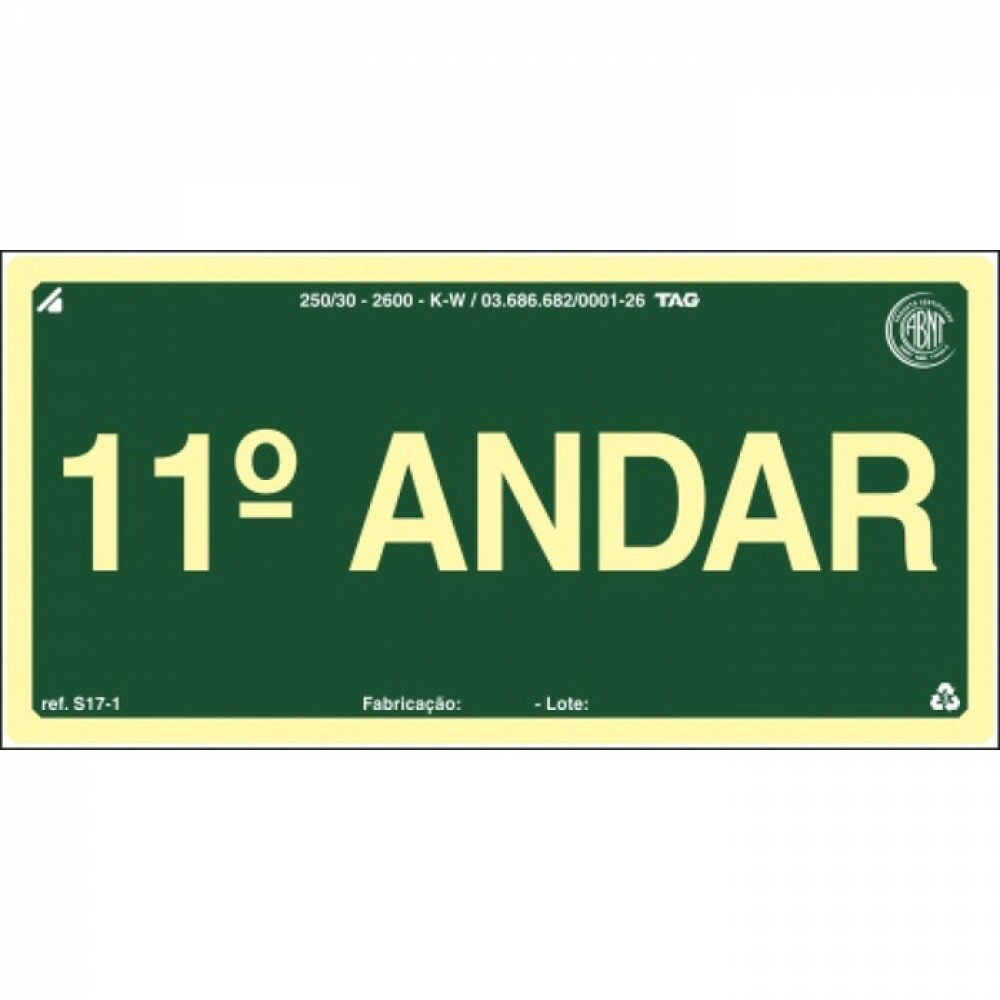 PLACA S17-11 PAVIMENTO 11º ANDAR 20X10 EM PVC 2MM NBR 13434 FOTOLU. AUTO EXTINGUIVEL