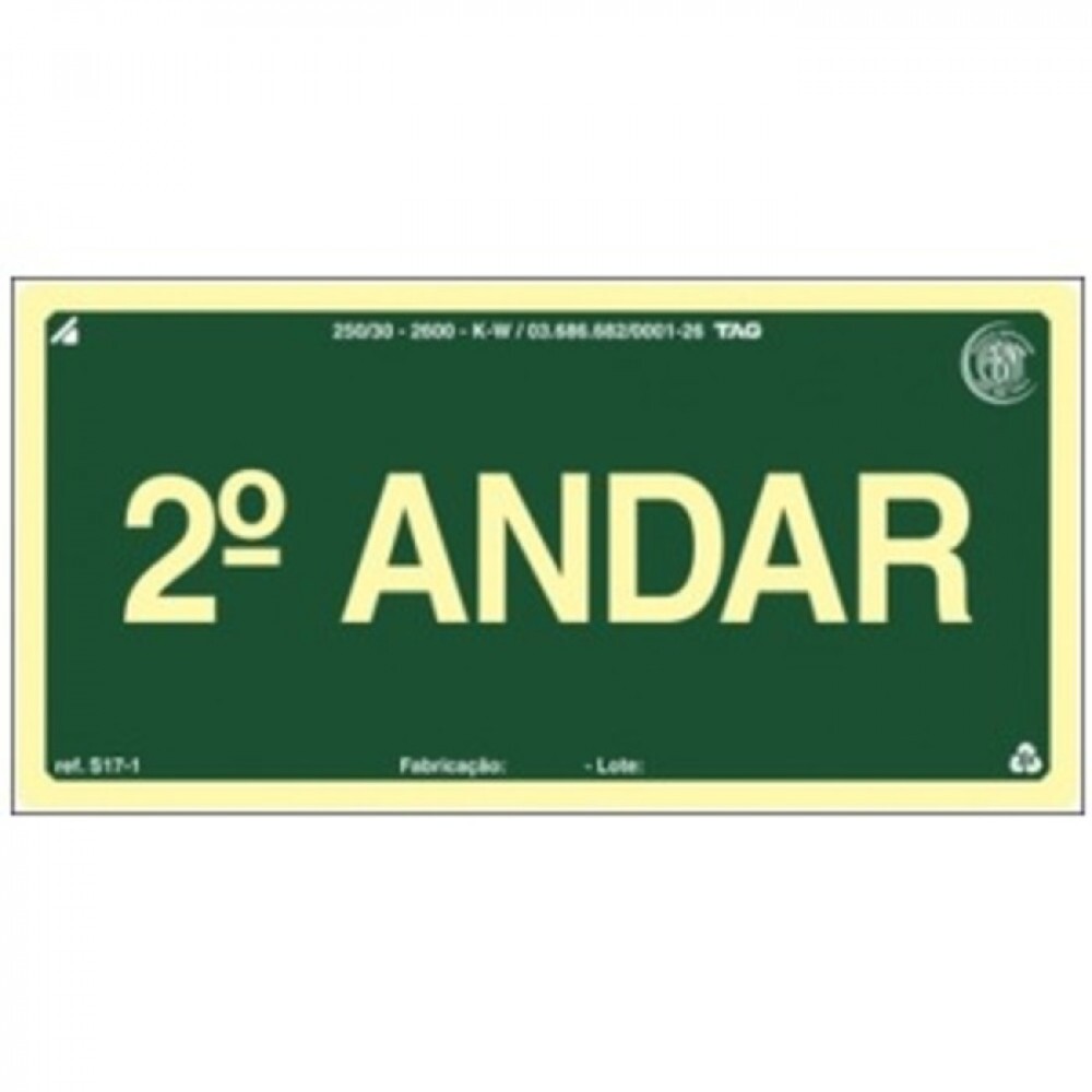 PLACA S17-02 PAVIMENTO 2º ANDAR 20X10 EM PVC 2MM NBR 13434 FOTOLU. AUTO EXTINGUIVEL