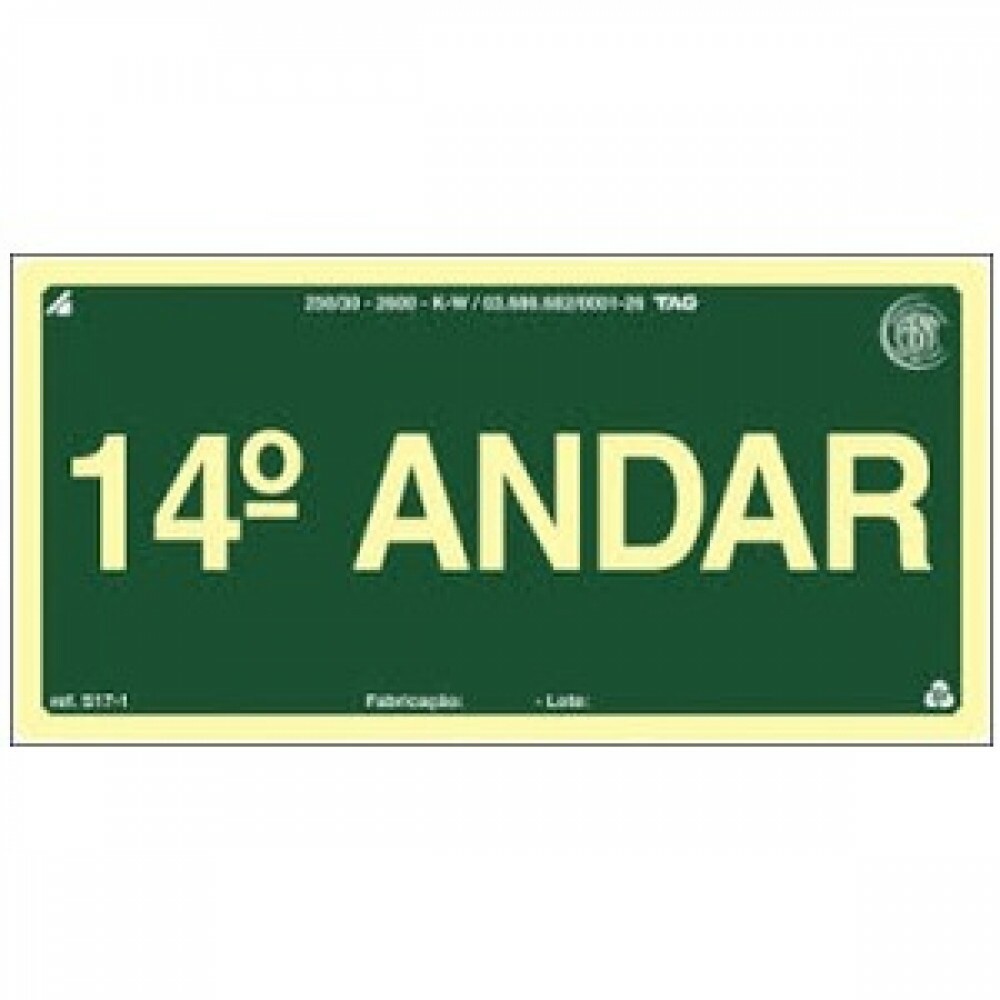 PLACA S17-14 PAVIMENTO 14º ANDAR 20X10 EM PVC 2MM NBR 13434 FOTOLU. AUTO EXTINGUIVEL