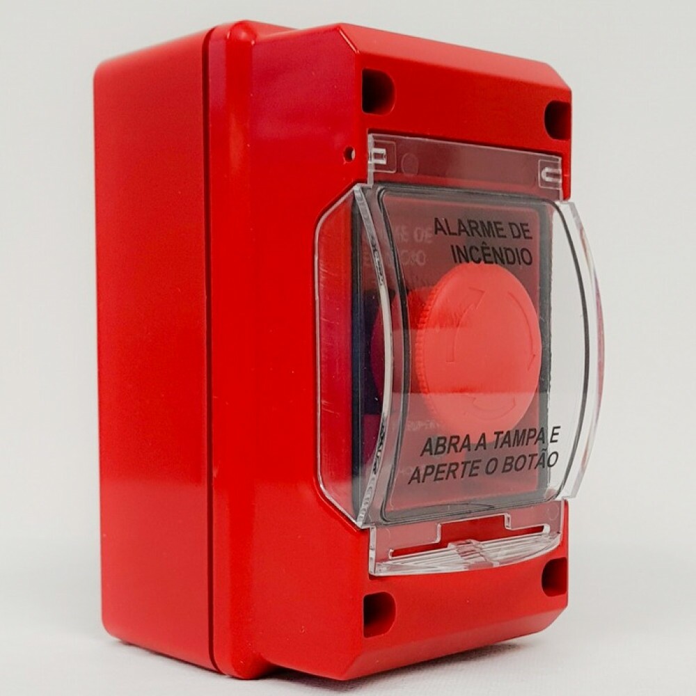 Este dispositivo é destinado ao acionamento manual para sinalização de princípio de incêndio à central de alarme de incêndio.|Possui sinalização visual de funcionamento (LED verde) e sinalização áudio e visual de incêndio (sirene e LED vermelho).|Para acionar o dispositivo, aperte o centro do acrílico até travar.|Para destravar, empurre com uma chave o gancho na cavidade localizada na parte superior do acrílico.|Compatível com as centrais de alarme de incêndio Tecnohold