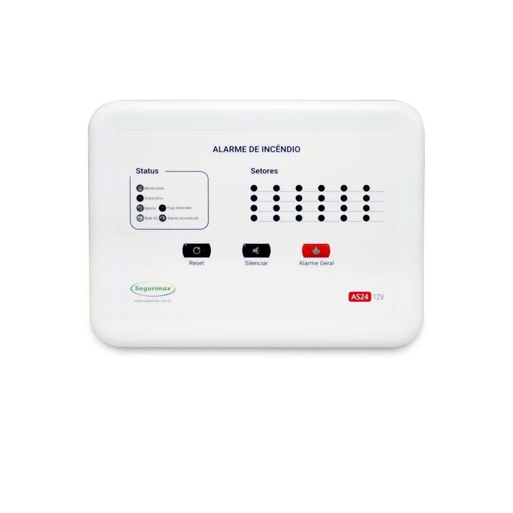 Setores: 12 laços|Alimentação: 110/220v|Bateria (inclusa): 12v 1.3ah|Total de dispositivos: 240|Área de Cobertura por Laço: 1600m²|Cabeamento por Laço: Até 300m|Dispositivos por Laço: 20|