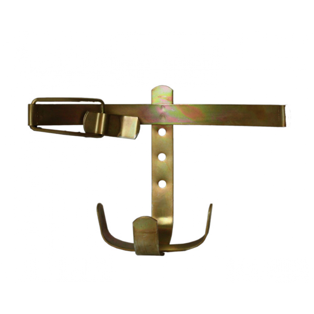 Suporte veicular para Extintor; Material: Vergalhão redondo de aço. Acabamento Bicromatizado. Deve ser fixado no veículo, sustentando o extintor de forma correta, segura e de fácil acesso em caso de emergência.