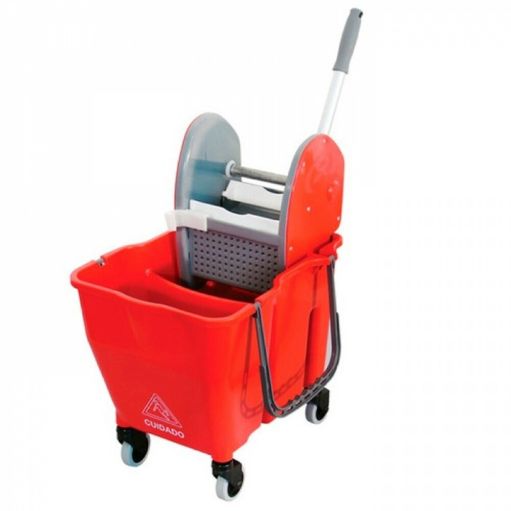 Único equipamento produzido no Brasil em cores para limpeza seletiva. Rodízios projetados para fácil manutenção e higienização. Estrutura em polipropileno. Balde com capacidade de 25 litros. Sistema de espremedor com pressão superior. Clip de fixação para haste. Rodízios projetados para facilitar a manutenção e higienização. Disponível nas cores para limpeza seletiva. Pode usar MOP plano ou vertical.|Comprimento: 0.3 mm |Largura: 0.38 mm|Altura: 0.4 mm|Peso: 6.1 Kg