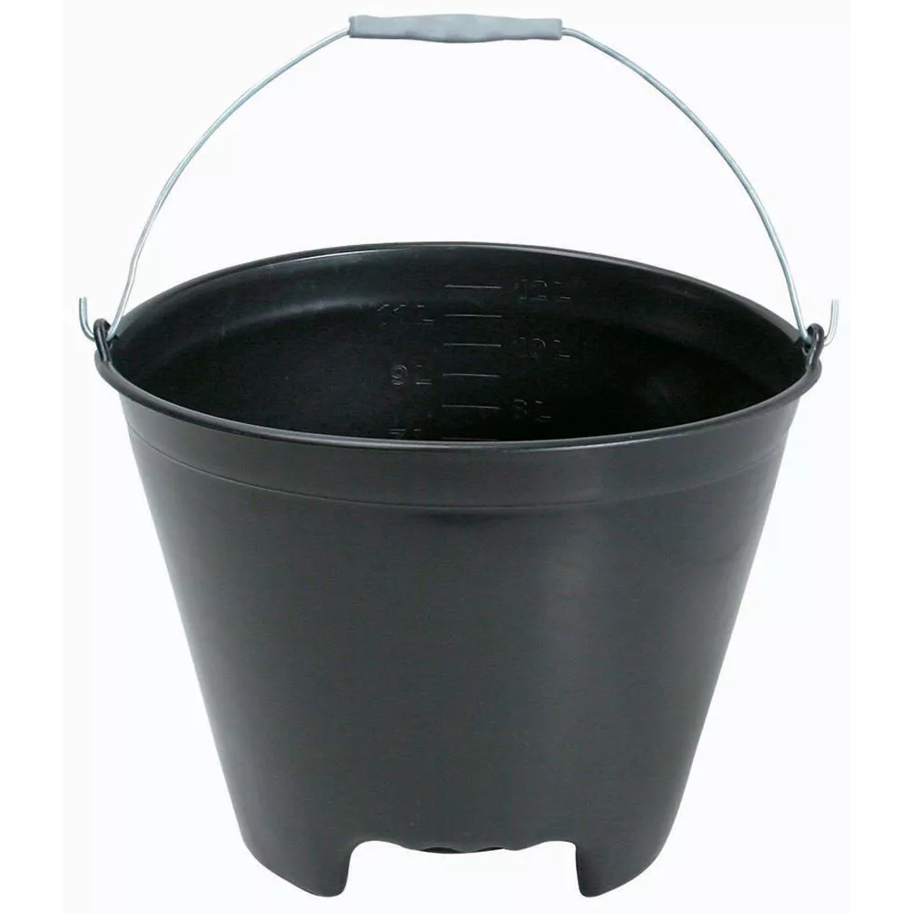 Com pegador em todo fundo do balde. Alça revestida com mangueira. Maior espessura da parede. Maior resistência a impactos.