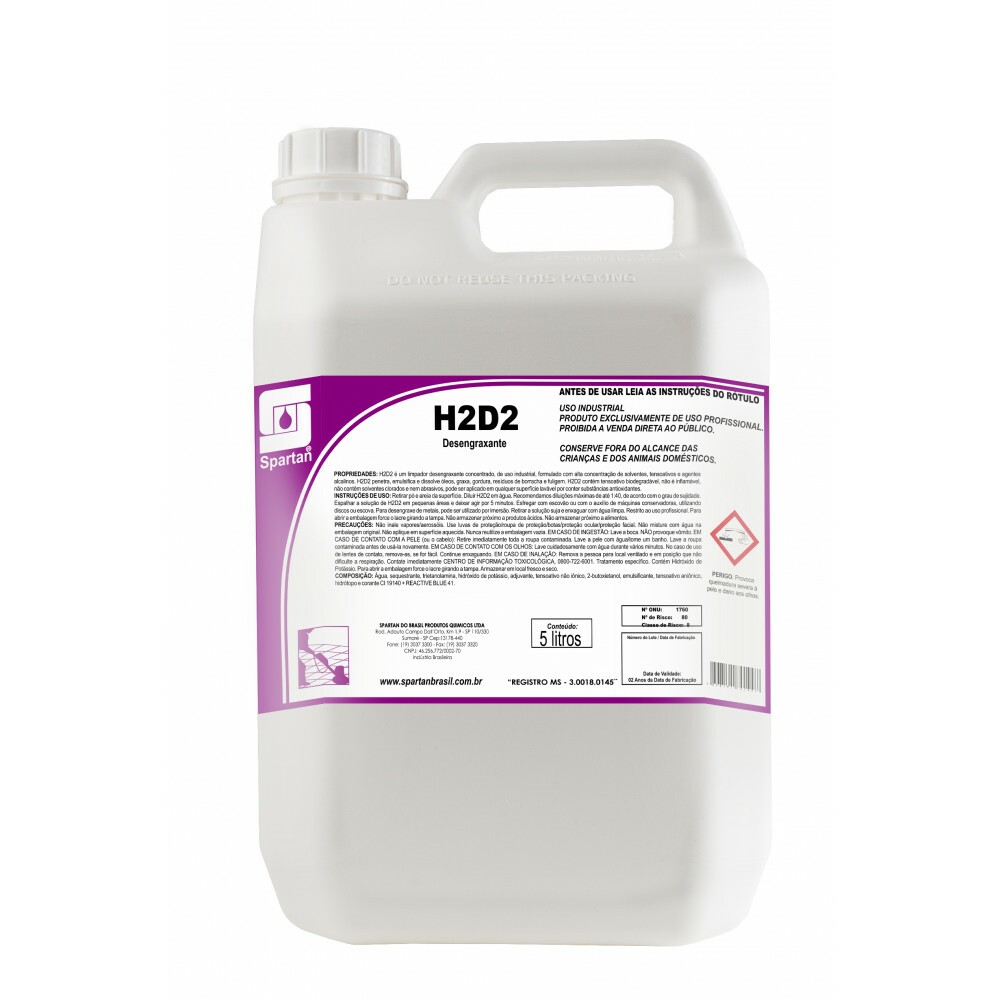 H2-D2 é um limpador desengraxante concentrado, de uso industrial, formulado com alta concentração de|solventes, tensoativos e agentes alcalinos. H2-D2 penetra, emulsifica e dissolve óleos, graxa, gordura, resíduos de borracha e fuligem.|H2-D2 contém tensoativo biodegradável, não é inflamável, não contém solventes clorados e nem abrasivos, pode ser aplicado em qualquer superfície lavável por conter substâncias antioxidantes.