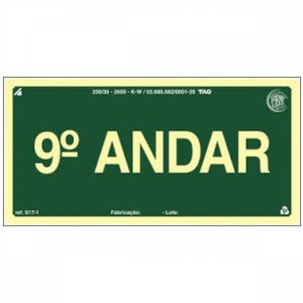 • Modelo: PLACA FOTOLU. AUTO EXTINGUÍVEL PAVIMENTO 09 ANDAR 19,5 X 19,5 (D